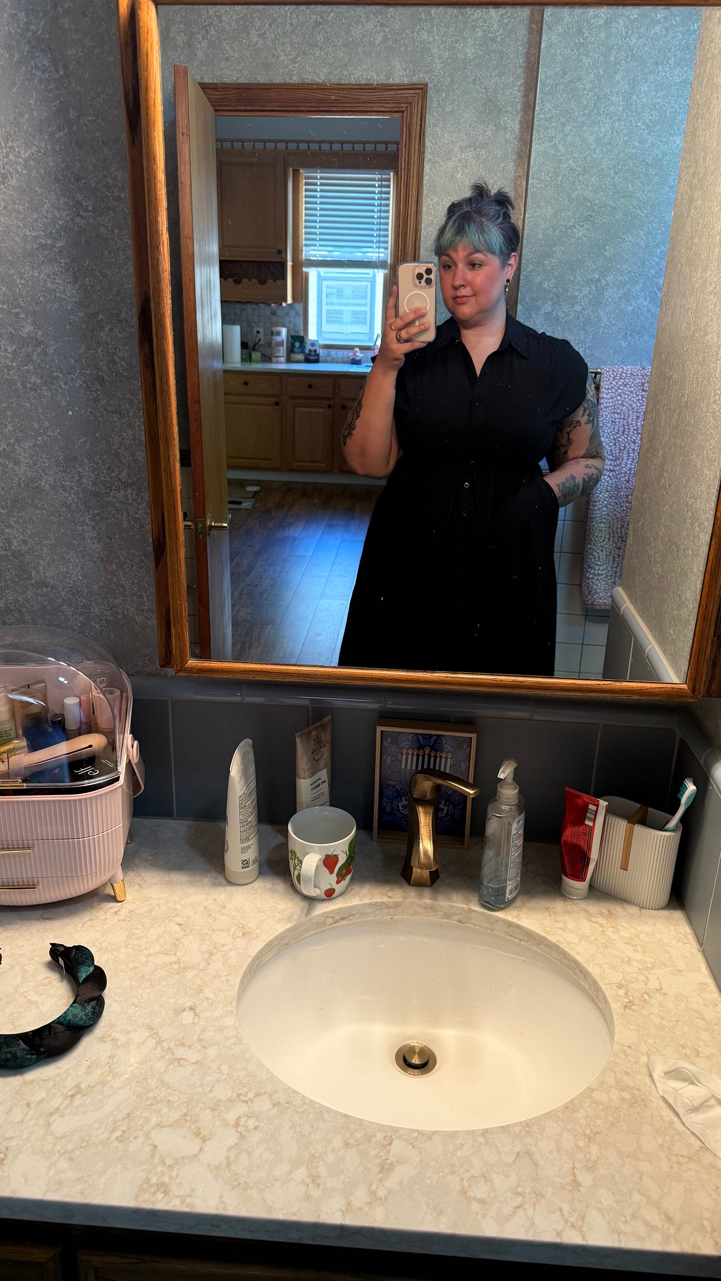 Femmes can be thems. It’s a phrase I first heard by Transpainter (please buy their shit!) I have been at war with my femme side since I was a teenager. How do you accept and love a body that feels created for the male gaze? How do you heal it after years of abuse, of disregard? I think it might be putting on a dress and letting people stare at me and not disappearing into the background. I think it’s wearing the makeup and doing the skincare, nourishing and touching my body in thoughtful ways instead of with sharp objects and disdain. I’m still figuring it out [but I think I’ll keep putting on the dresses with the Dr. Martens and my small smirk.]